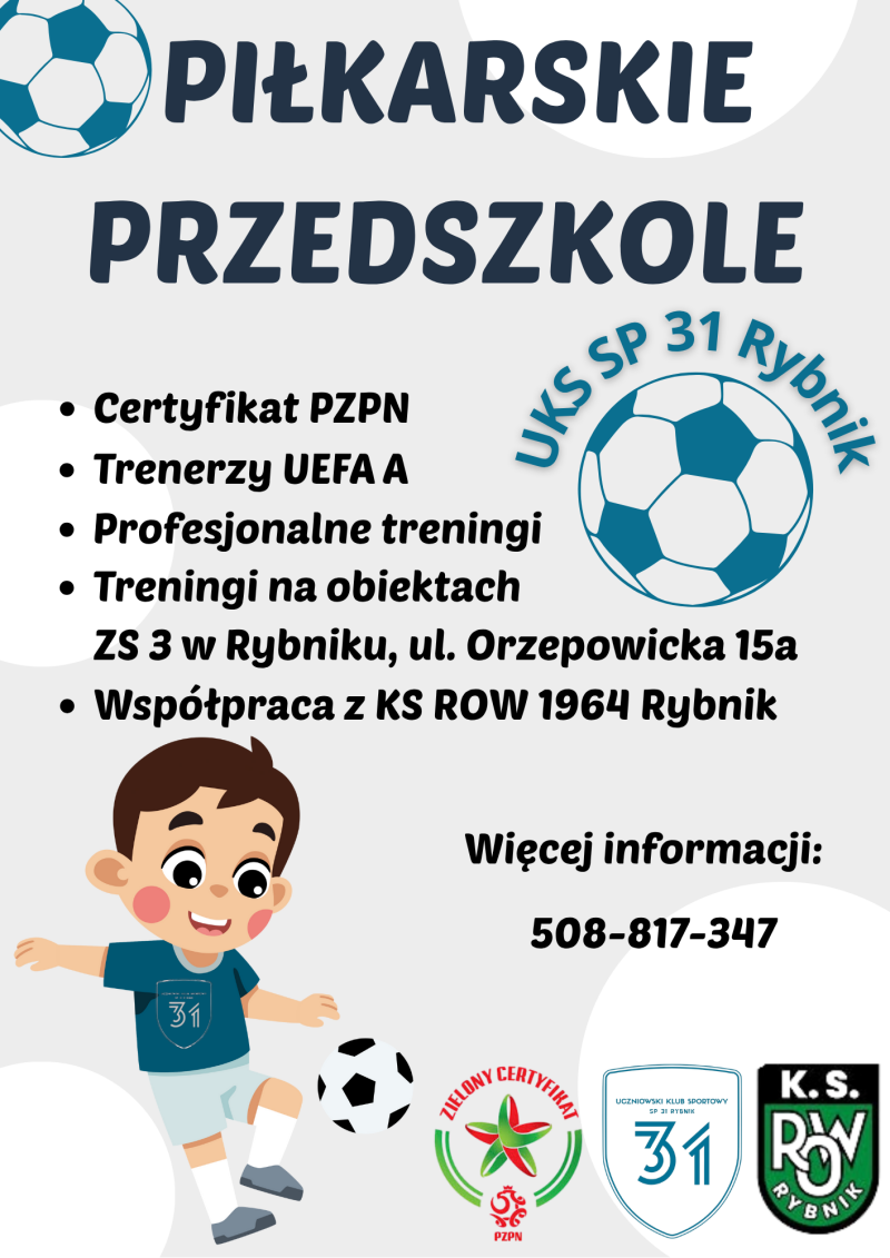 Zapisy do piłkarskiego i sportowego przedszkola dla dzieci w wieku 4–6 lat są otwarte przez cały rok.